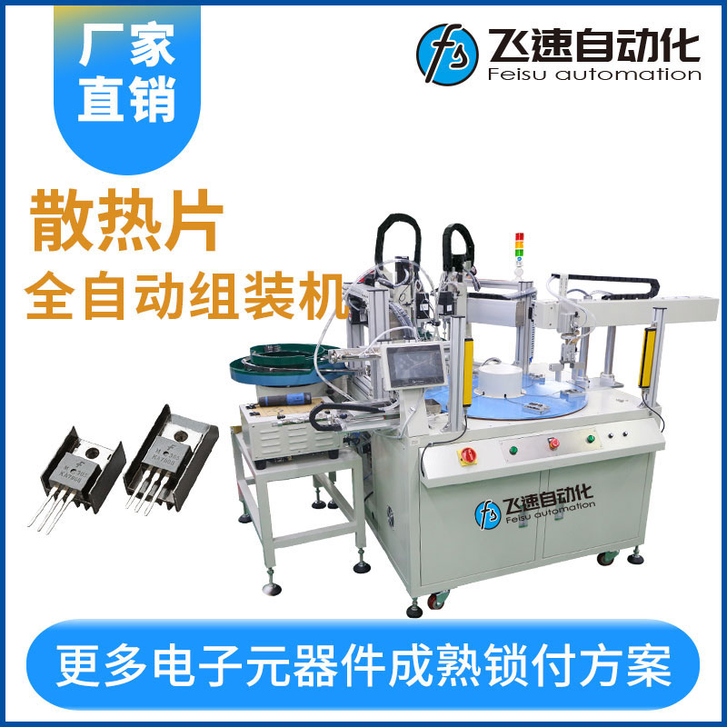 - 產品簡介: 散熱片全自動組裝機各個工序完成只需2-4秒鐘,使用自動鎖散熱片設備能確保產品的一致性,提高產品質量,機器操作人員只需一名,大大提高了生產效率,減少人力成本,是一臺低投入高回報的自動鎖螺絲機器設備。