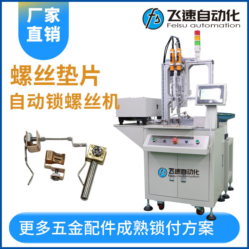 - 產(chǎn)品簡(jiǎn)介: 螺絲墊片自動(dòng)擰螺絲機(jī)實(shí)現(xiàn)將墊片套置在螺絲根部的加工目的,組合后墊片與螺絲不易松脫,組合效果好,操作十分簡(jiǎn)單,只需一名人工輕松操作,大大降低了人工成本,實(shí)現(xiàn)了自動(dòng)化生產(chǎn),提高生產(chǎn)產(chǎn)量效果。 在緊固螺絲都會(huì)和墊片一起配合使用,人工手動(dòng)把螺絲穿過(guò)墊片再擰緊,在短時(shí)間內(nèi)對(duì)需求量大的穿好螺絲墊片無(wú)法達(dá)到效果,裝配螺絲墊片的方式就會(huì)降低了效率,無(wú)法滿足生產(chǎn)商的需求。 所以為了克服螺絲墊片人工手動(dòng)裝配效率低,成本高的缺陷,廠家往往會(huì)考慮到生產(chǎn)效率,成本以及產(chǎn)品質(zhì)量等因素會(huì)選擇一款自動(dòng)化組裝螺絲墊片的自動(dòng)擰螺絲機(jī)器。